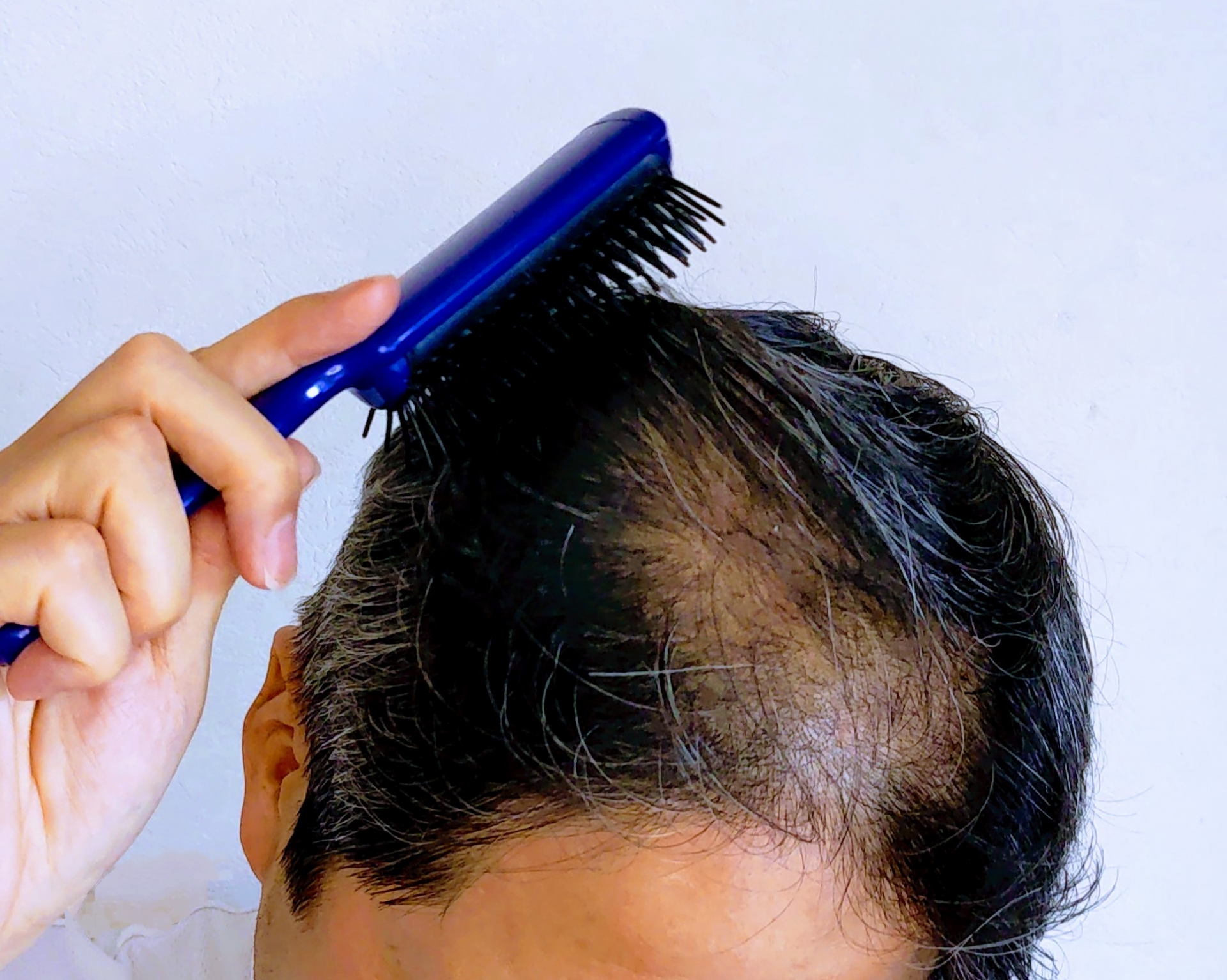頭頂部の薄毛は自分では気づきにくい部分です。スマートフォンで頭頂部を撮影する習慣をつけましょう。